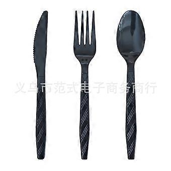 Black textured plastic knife, fork and spoon tableware birthday party disposable tableware photography props solid color knife, fork and spo