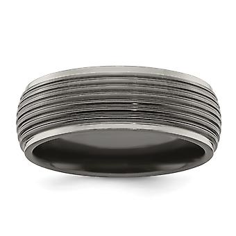Black-Titanium Grooved Step Edge 8mm Band-Band Style Ring for Women and Men - Ring Size: 7 to 13
