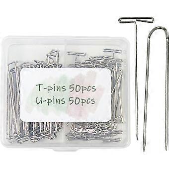 Blocking Pins for Knitting, Stainless Steel Anti-Rust T Pins U Pins Kit with Clear Box, Portable Needlework Supplies, Multi-Functional Modeling Croche