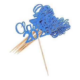Blue Graduation Hat Cake Topper for Home Celebration Durable Paper and Bamboo Unique Design 10pcs