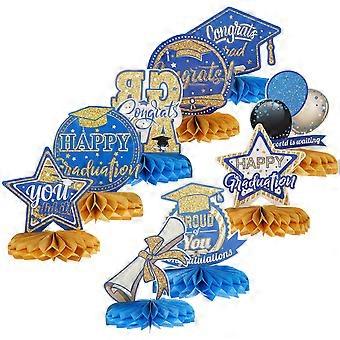 Blue Graduation Party Decorations with Honeycomb Centerpieces for Table 9pcs