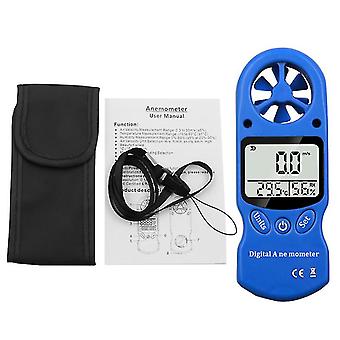Blue Mini Handheld Anemometer, Thermometer And Hygrometer, Lcd Digital Screen Display Az16059