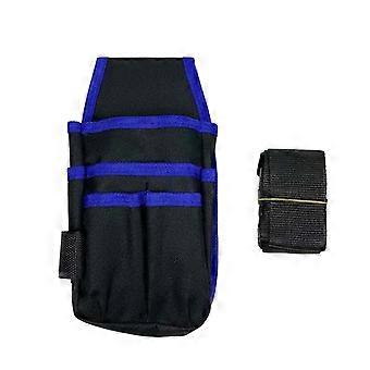 Blue waist bag with multiple pockets, adjustable buckle, ergonomic, with screwdriver/tool kit