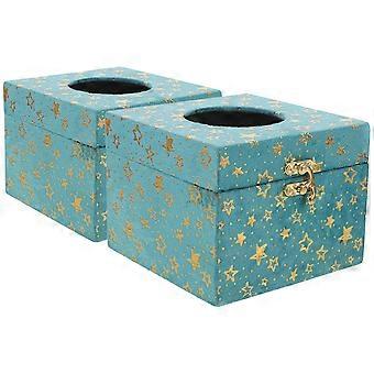 Blue Wooden Tissue Box for Storage Use 2Pcs Retro Decorative Napkin Holder
