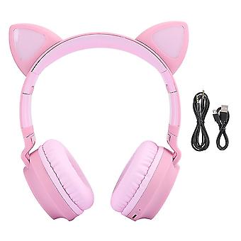Bluetooth 5.0 Cat Ear Headphones - Pink, LED, Noise Cancelling, Memory Card Support