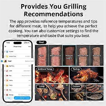 BMT01 Wireless Meat Thermometer with 2 Probes Bluetooth Smart LCD Alerts for Smoker Oven Digital G