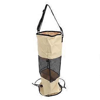 Boat Trash Bag Nylon Mesh Reusable Portable Boat Garbage Container with Lanyard for Outdoor Seaside Khaki