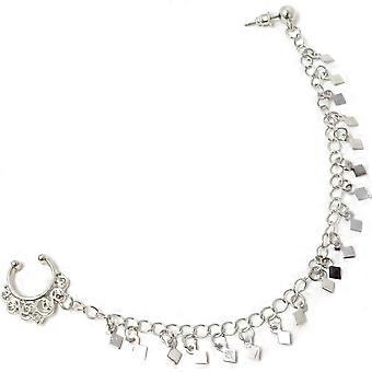 Body Jewelry Fake Spacer No Piercing Nose Ring with Chain Nose to Ear Chain with Fringe(Silver)