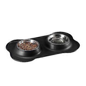 Bone-shaped Pet Cat And Dog Double Bowl Stainless Steel Conjoined Double Bowl For Dual Use(black)