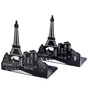 Bookends Steel Universal Economy Holder Stand Book Rack Desk Bookend, Eiffel Tower, 1 Pair(Black)