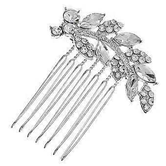 Bride Rhinestone Hair Accessory Leaf Shaped Decorative Comb Silver 5.5x5cm Dances And Engagements 1Pc