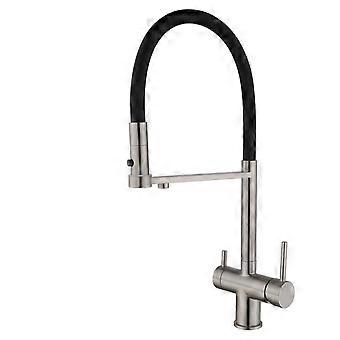 Brushed gold brass kitchen faucet, double handle, cold and hot, direct drinking water design, sink faucet