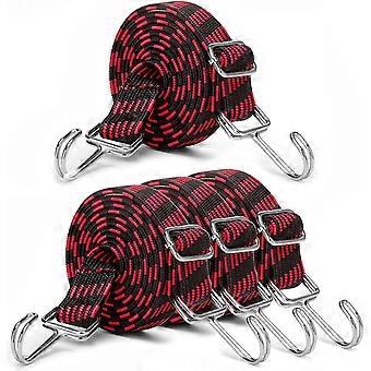 Bungee Cord (Red), 2m Adjustable Flat Bungee Cord with Hook Tensioner - 4 Pack Bungee Cords - Bungee Cords for Toilets, Camping, Backpacks, Cars, Bike