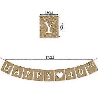 Burlap Birthday Banner Happy 40th Party Decoration Rectangular Flags Khaki 17 x 13 x 0.1 Cm 1Pack