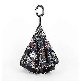 C- Parasol Folding Rain Windproof Umbrella Double Layers Inverted Reverse--pony Flower
