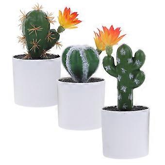 Cactus Plants Artificial Cactus Bonsai Ornament Home Decoration Multi Color 7.6x7.6x17cm Non-wilting Maintenance Free 3Pcs