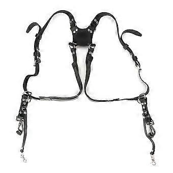 Camera Strap Leather Double Shoulder Harness Strap Photography Accessories for DSLR CamerasBlack