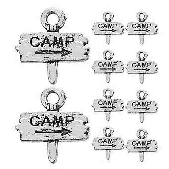Camping Charm Retro Camp Sign Pendants Silver Rectangle Design for Jewelry Making 10Pcs