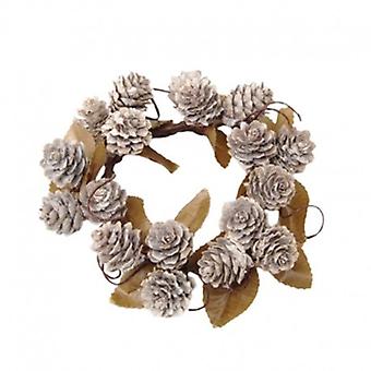 Candle ring for pillar candles with cones and beige leaves