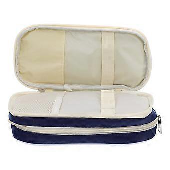 Canvas Pencil Case for Office with Zipper 3Pcs Large Storage Dark Blue Pouch