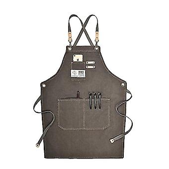 Canvas Work Apron With Adjustable Strap Multi Pockets For Barista Barber Beauty Salon Dark Grey