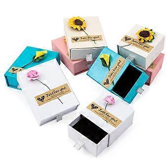 Cardboard Jewelry Box with Paper Flower and Stickers Rectangle Mixed Color 9.05x7.05x3.05cm 6.05x6.1x3.65cm 8pcs/set
