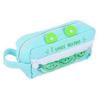 Cartoon Frog-Shaped Pencil Case 2Pcs Ideal Storage Solution For Students Green Canvas School Supplies