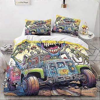 Cartoon Pattern Printed Duvet Cover with Zipper Closure, Soft Microfiber Vintage Car Bedding Set for Certain Brand