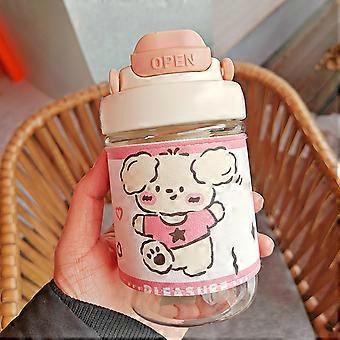 Cartoon student cute double drinking straw cup portable anti-scalding water cup