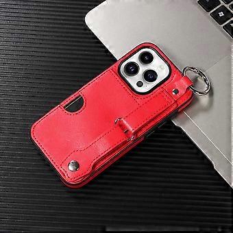 Case For Iphone 14 Pro Red Calf Pattern Card Holder Ring Buckle Wrist Strap Ee186