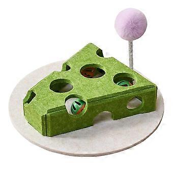 Cat Puzzle Toy Cheese-Shape Treat Box With Teaser Wand Bell Ball For Floor Play And Kitten Or Puppy Entertainment
