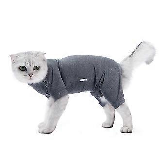 Cat Recovery Suit 4 Legged Prevents Hair Loss Highly Elastic Comfortable Skin Friendly Soft Kitten Surgical Recovery Suit Flower Grey L