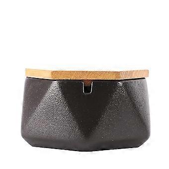 Ceramic Ashtray With Lid, Windproof Design And Geometric Shape(1pcs-black)
