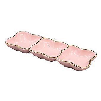 Ceramic Flavor Seasoning Plate for Home Use Three-Compartment Pink