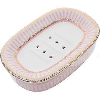Ceramic Soap Dish - Printed Soap Holder for Bathroom - Portable Bathtub Soap Box - Decorative Soap Container and Storage Box - Pink Soap Organizer