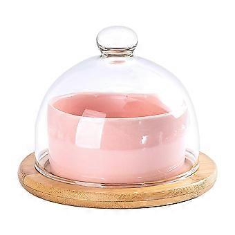 Ceramic Soup Bowl With Lid Ice Cream Bowl For Party Round Wood 1Set