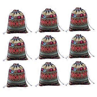 Chinese Fabric Bag Embroidered Drawstring Pouch Closet Storage 10x12 Cm 10Pcs