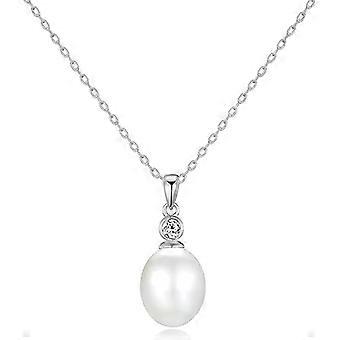 White pearl pendant necklace in sterling silver with Zirconia crystal
