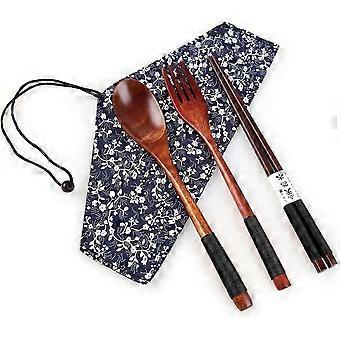 Chopsticks Spoon Fork Set Japanese Style Tableware Travel Utensils with Pouch for Camping,Picnic,Office or Home (Style A)