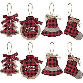 Christmas Decorations Tree Ornament, 8 Pcs Red Black Buffalo Check Plaid Stitching Burlap Hanging Ornaments, Tree Ball Bell Stocking Shaped