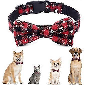 Christmas Dog Collar With Bow Tie - Adjustable Design Handmade Dog Collar - For Small Medium Large Dogs Size L