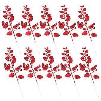 Christmas Glitter Leaves for Decoration in Bright Red Color Made with PE Material and Glitter Powder 10 Pieces