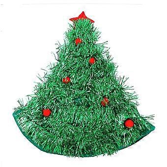 Christmas Party Hat with Lights in Tree Shape Made of Non Woven Fabric and Aluminum Film Green One Size Fits Most