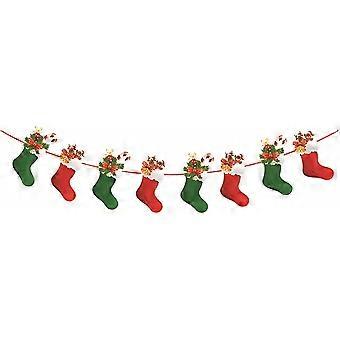 Christmas Sock Banner, Different Pattern Sock Shaped Christmas Banner, Home Party New Year Decoration