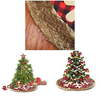 Christmas Tree Skirt 90cm Large Plaid Snowflake with Thick Plush Edge Xmas Home Decor