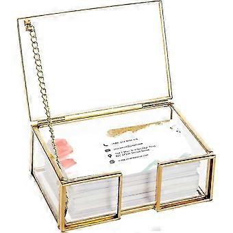Clear Gold Glass Business Card Box With Lid Name Card Display Business Card Organizer Container Collection Cards Box Storage For Office Deskto
