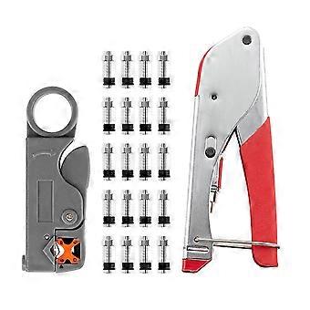 Coaxial Crimping Pliers, Wire Stripper,20 Pcs F Connector