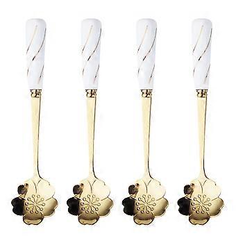 Coffee Spoon with Ceramic Handle for Household Use 4Pcs Flower-Shaped