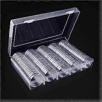 Coin Capsule, 100 Pieces Coin Capsules for Storing/Collecting Coins, Plastic Coin Capsule with Transparent Circular / Coin Capsules with Box (30mm)