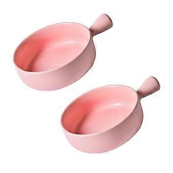Color Salad Plate for Baking Use 4Pcs Round Ceramics Baking Tray Pink